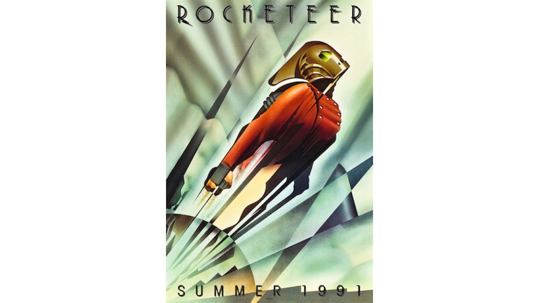 When Walt Disney Pictures shipped prints of The Rocketeer to theaters in advance of its opening on June 21, 1991, they were also sending their hopes for a shiny new franchise. And the film, based on the comic book character created by Dave Stevens nine years earlier, had all the right ingredients: the period setting and bright pop style of Dick Tracy (Disney’s funny-pages hit of the previous summer), crossed with the Saturday serial homage of the Indiana Jones movies (specifically the adventures of Commando Cody, the helmeted, jetpack-powered hero of two Republic serials which later appeared on Mystery Science Theater 3000).