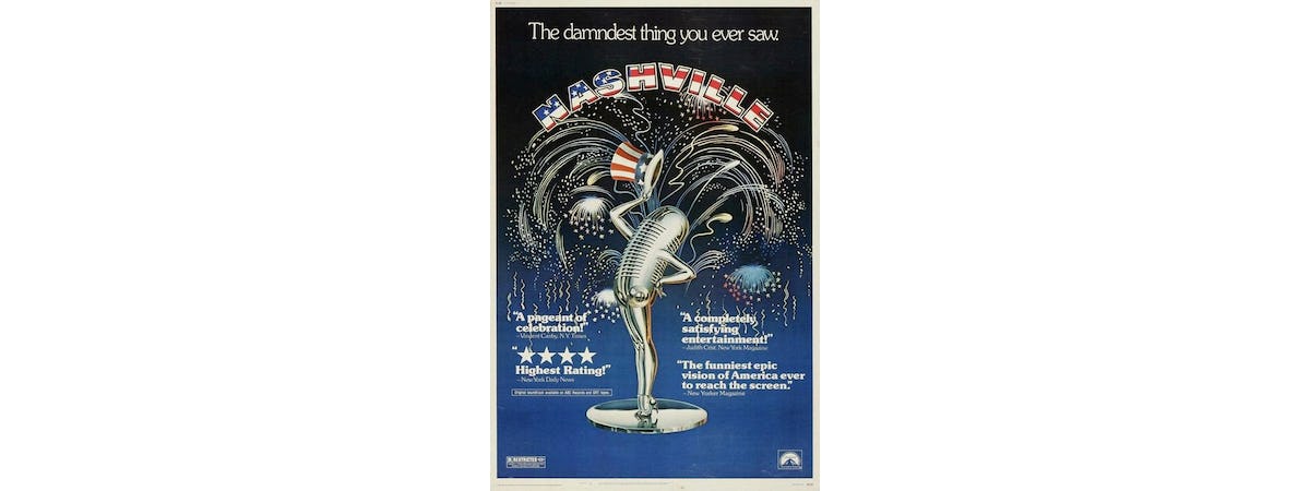 Throughout his long and fascinating career, Robert Altman frequently explored the theme of the American identity — who we are, how we think of ourselves, and the tension between those two notions. Nowhere did he do so more explicitly than in his 1975 masterpiece Nashville, released on the eve of the American bicentennial (it opens with the recording of a patriotic anthem called “200 Years” — “We must be doin’ somethin’ right to last 200 years!”). Using the music capital as a microcosm for the country, Altman assembles a large, unruly cast of unforgettable (and indisputably American) characters and caricatures, rotates between them, combines and disrupts them, and then assembles all for a climactic event that is as devastating as it is seemingly inevitable. Nashville’s power lies not in that event, though; it is in the aftermath, as country icon Haven Hamilton grabs a microphone and implores the crowd, “This is Nashville! You show ‘em what we’re made of,” and leads a sing-along of “It Don’t Worry Me” — as good a choice for an alternate national anthem as any.
