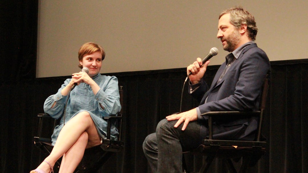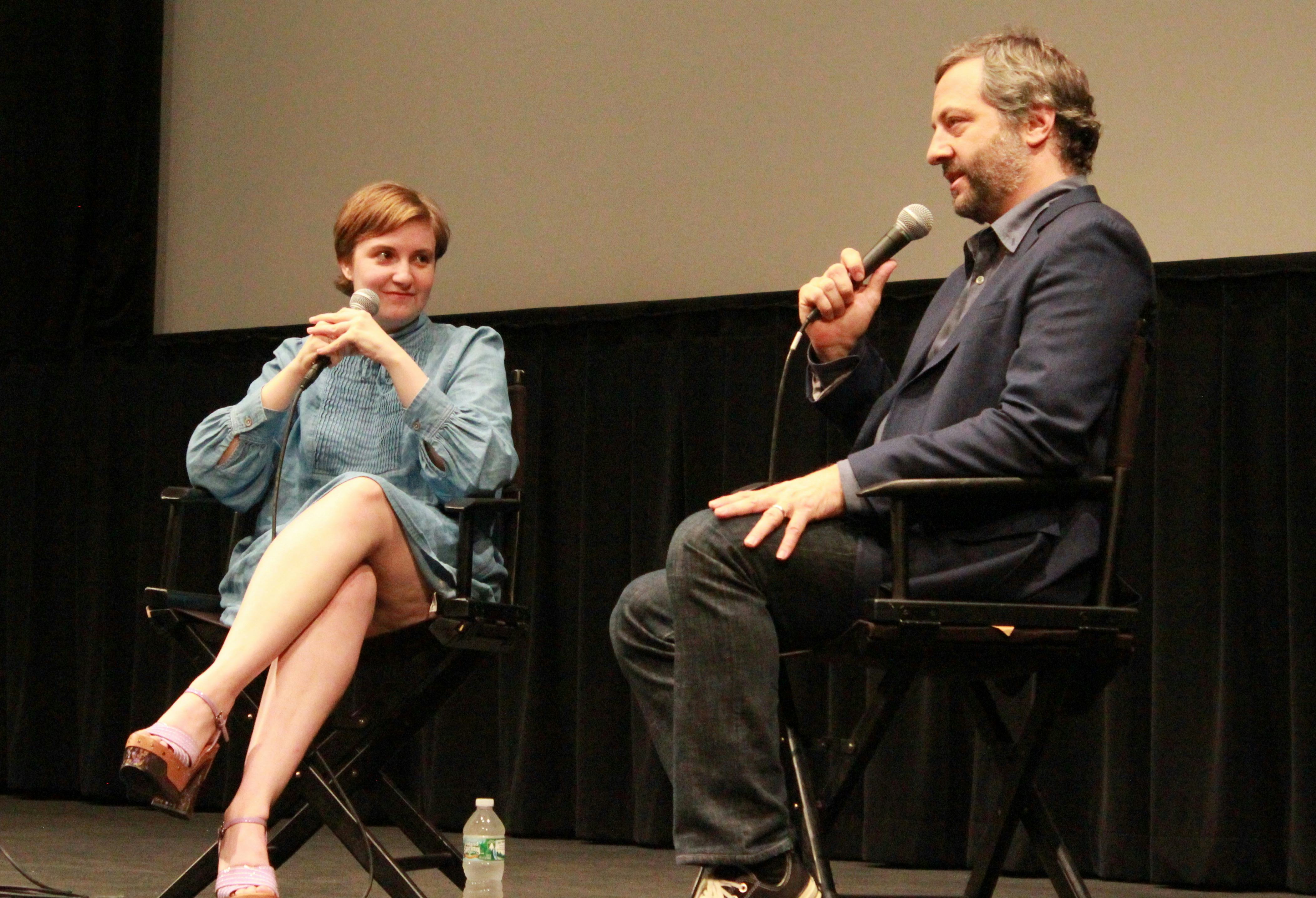 Last night, as part of the Film Society of Lincoln Center’s pre- Trainwreck retrospective “I Found This Funny: The Comedy World of Judd Apatow,” the ubiquitous writer/producer/director sat down on the Lincoln Center stage for a loose, chatty, often hilarious conversation with his frequent collaborator Lena Dunham. Apatow had a giggle or two at the expense of the venue (“I know we’ve gotta rush and get Matewan on or something,” he joked, adding, “Just feeling out for the ‘Film Center’ jokes”), while Dunham confessed during the Q&A, “This is the space in which I’m most afraid to run into people I’ve had sex with — there’s a lot of, like, bearded guys in the back that look familiar to me?” And while they hit many of the expected topics — stand-up comedy, feminism, Taylor Swift, Bill Cosby (asked if she’d participate in a “roast” of Cosby, Dunham fired back, “If Bill Cosby agreed to be roasted on a spit, I would participate”) — many audience members were clearly writers and filmmakers looking for advice, which prompted some valuable insights.