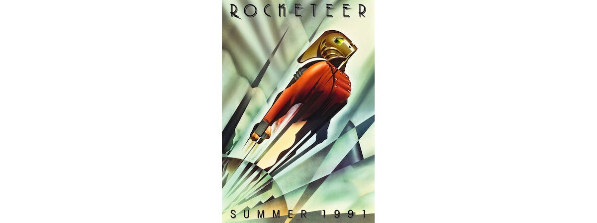 When Walt Disney Pictures shipped prints of The Rocketeer to theaters in advance of its opening on June 21, 1991, they were also sending their hopes for a shiny new franchise. And the film, based on the comic book character created by Dave Stevens nine years earlier, had all the right ingredients: the period setting and bright pop style of Dick Tracy (Disney’s funny-pages hit of the previous summer), crossed with the Saturday serial homage of the Indiana Jones movies (specifically the adventures of Commando Cody, the helmeted, jetpack-powered hero of two Republic serials which later appeared on Mystery Science Theater 3000).