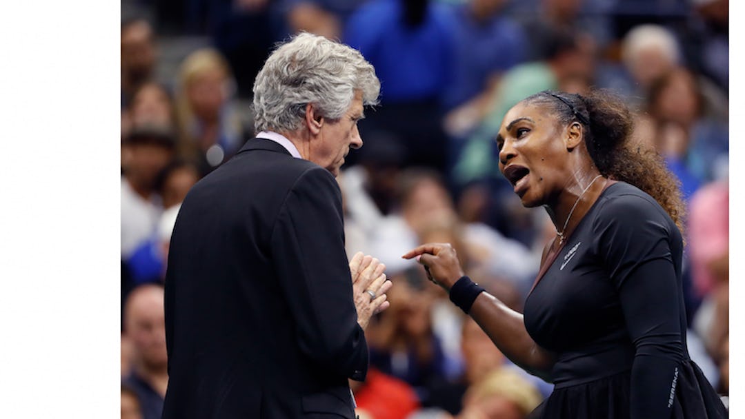 But it’s not simply that those who are angry at the kinds of things Serena Williams is angry about are “too inhibited” to disclose their fury. It’s also that they are told all the time — like when they watch a tennis final — that if they do permit themselves to rage, even if that rage pales in comparison to the rage of their male peers, their white predecessors, that they will face reprimand. Women are made to understand, all the time, how their reasonable expression of vexation might cost them the game. Women’s challenge to male authority, and especially black women’s challenge to authority, is automatically understood as a threat, a form of defiance that must be quashed. As Sally Jenkins put it about Ramos, writing in the Washington Post on Saturday night, “He couldn’t take it. He wasn’t going to let a woman talk to him that way. A man, sure. Ramos has put up with worse from a man.” Recalling that just last year, Rafael Nadal had told off Ramos without it costing him a match, Jenkins went on, “But he wasn’t going to take it from a woman pointing a finger at him and speaking in a tone of aggression.”