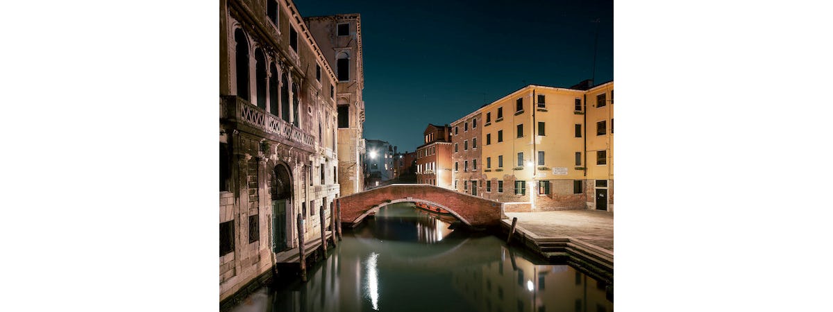 All of those interests collide in his gorgeous series “Sleeping Venice,” which showcases the Italian city’s buildings and connecting catacombs under the still of the moon. You can check out the entire series here (or on his must-follow Instagram), but we’ve picked out a few of our very favorites.